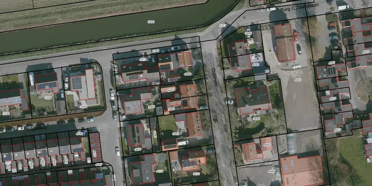 Gebruik de zoekbalk of klik op een perceel voor informatie over de adressen binnen dit perceel.
