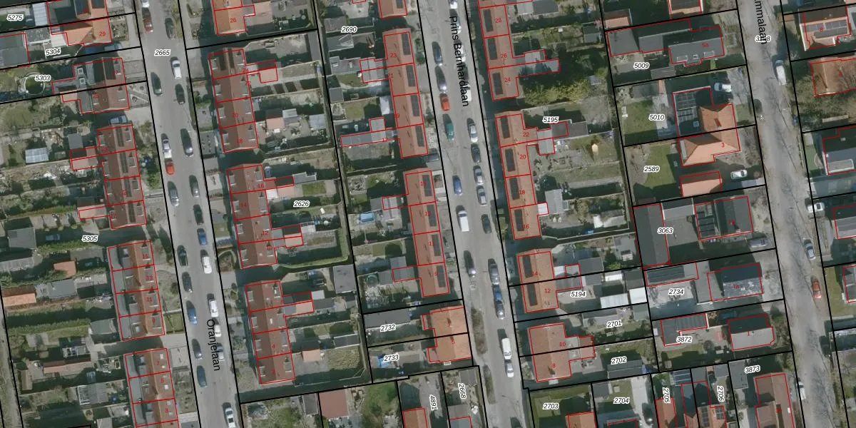 Het perceel waarop Prins Bernhardlaan 13 staat heeft een oppervlakte van 3130 m². Dit is een zeer groot perceel. De perceeloppervlakte wordt geregistreerd door het Kadaster. Gedetailleerde informatie over de maten van dit perceel kunt u vinden in het rapport Kadastrale kaart met maatvoering van Prins Bernhardlaan 13.