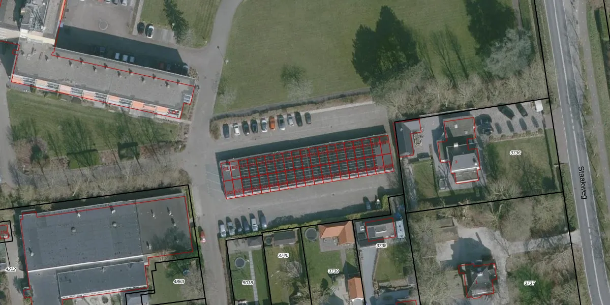 Staakweg 5-10 is gelegen op kadastraal perceel DLD00B5017. Deze kadastrale aanduiding is uniek en wordt gebruikt door het Kadaster om eigendomsrechten en andere zakelijke rechten vast te leggen. Het perceel maakt onderdeel uit van de kadastrale gemeente Dirksland.