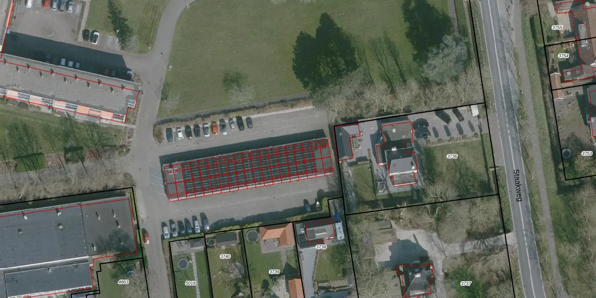 Staakweg 5-16 is gelegen op kadastraal perceel DLD00B5017. Deze kadastrale aanduiding is uniek en wordt gebruikt door het Kadaster om eigendomsrechten en andere zakelijke rechten vast te leggen. Het perceel maakt onderdeel uit van de kadastrale gemeente Dirksland.