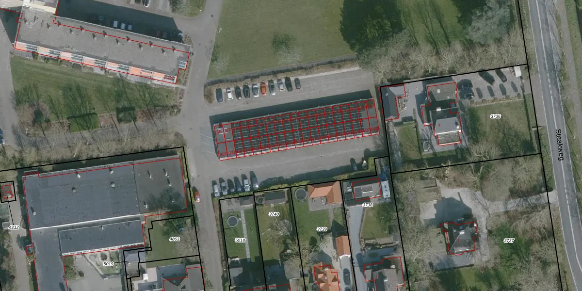 Staakweg 5-28 is gelegen op kadastraal perceel DLD00B5017. Deze kadastrale aanduiding is uniek en wordt gebruikt door het Kadaster om eigendomsrechten en andere zakelijke rechten vast te leggen. Het perceel maakt onderdeel uit van de kadastrale gemeente Dirksland.