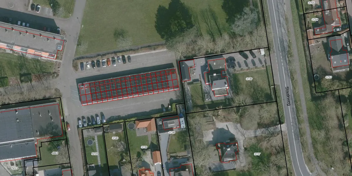 Staakweg 5-38 is gelegen op kadastraal perceel DLD00B5017. Deze kadastrale aanduiding is uniek en wordt gebruikt door het Kadaster om eigendomsrechten en andere zakelijke rechten vast te leggen. Het perceel maakt onderdeel uit van de kadastrale gemeente Dirksland.
