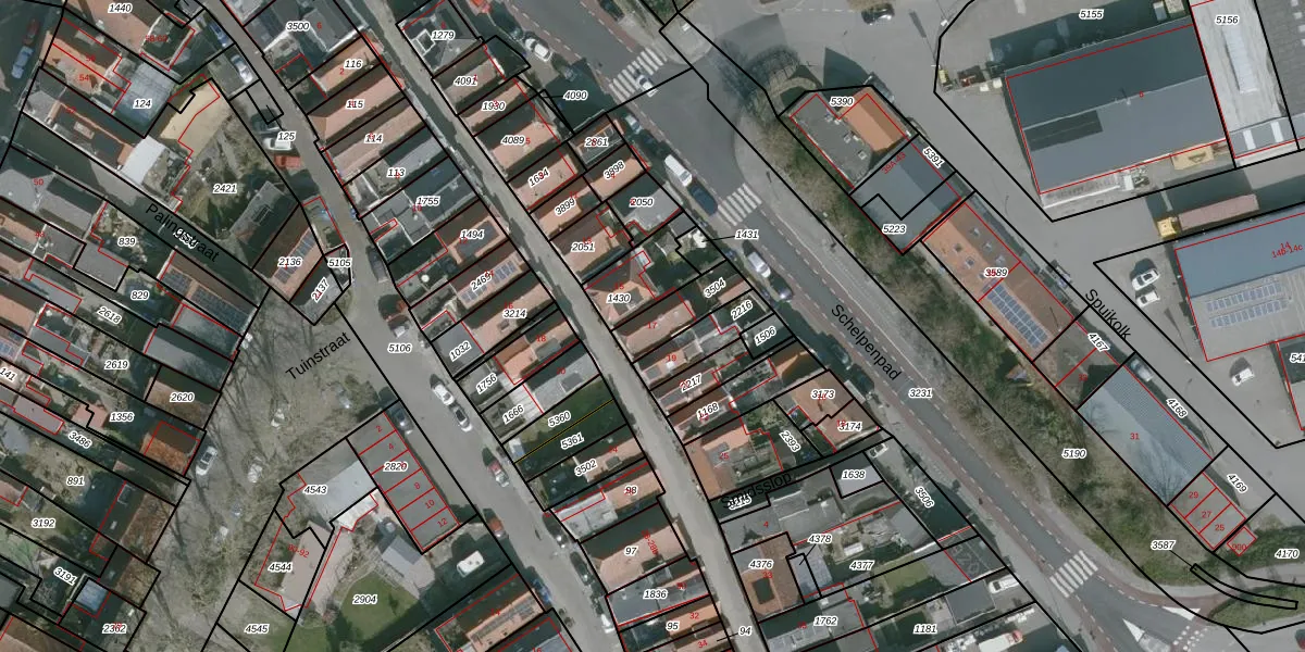Gebruik de zoekbalk of klik op een perceel voor informatie over de adressen binnen dit perceel.