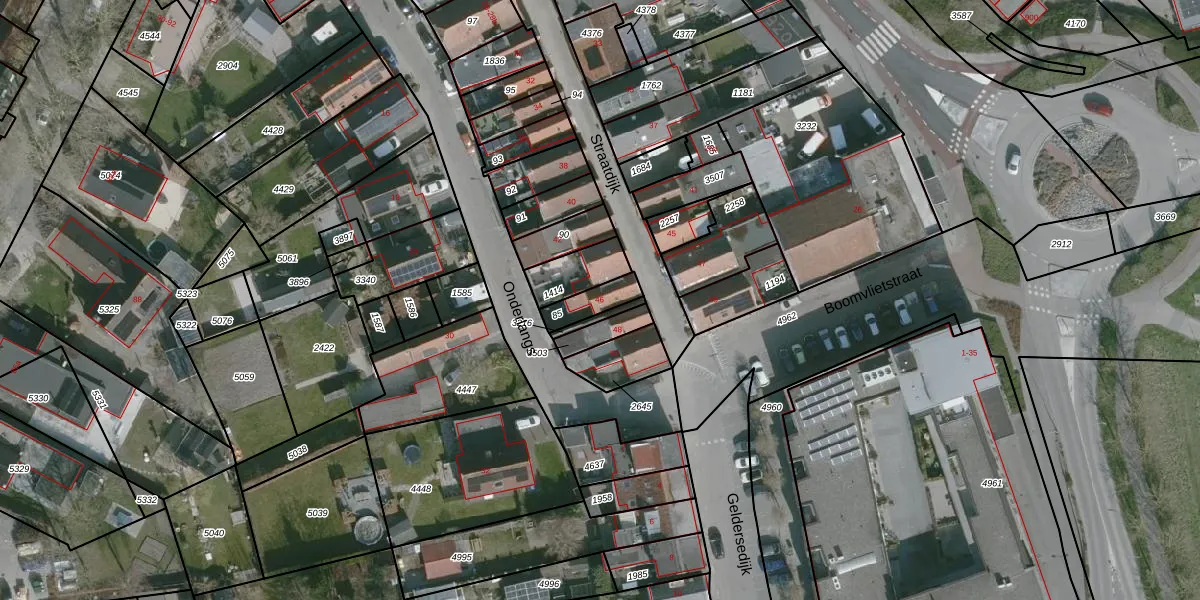 Het perceel waarop Straatdijk 46 staat heeft een oppervlakte van 78 m². Dit is een klein perceel. De perceeloppervlakte wordt geregistreerd door het Kadaster. Gedetailleerde informatie over de maten van dit perceel kunt u vinden in het rapport Kadastrale kaart met maatvoering van Straatdijk 46.
