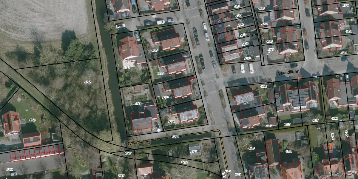 Gebruik de zoekbalk of klik op een perceel voor informatie over de adressen binnen dit perceel.