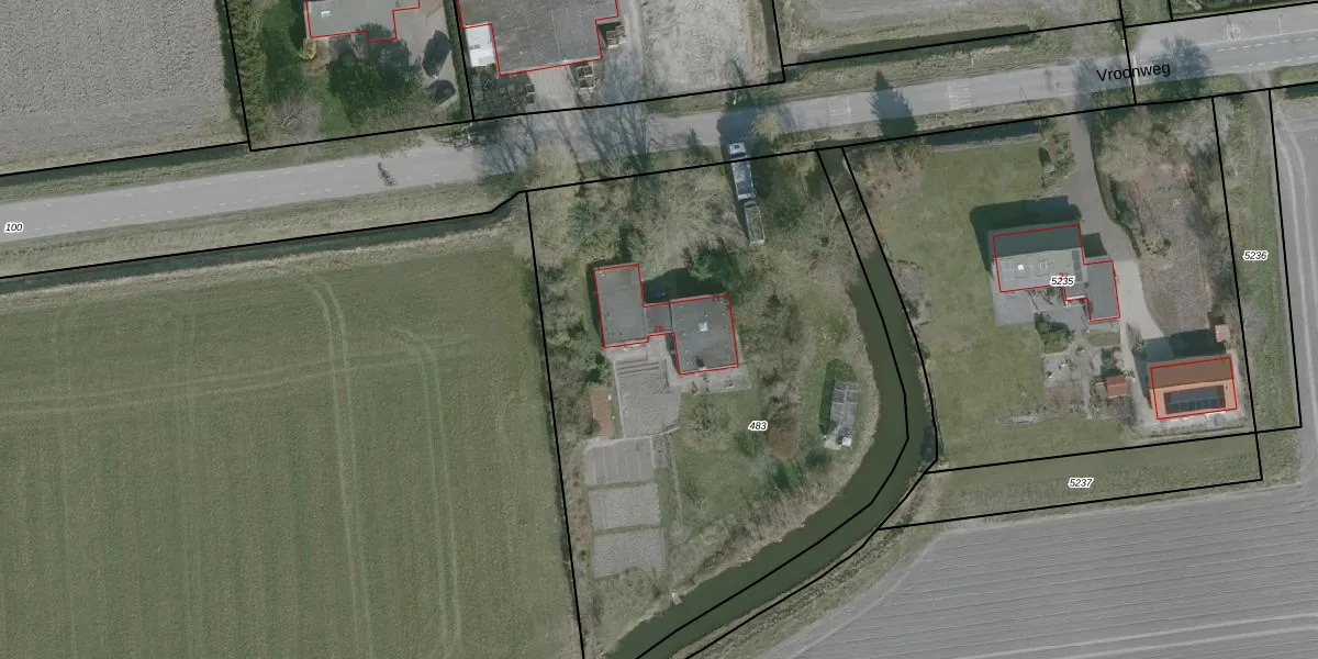 Het perceel waarop Vroonweg 29 staat heeft een oppervlakte van 3235 m². Dit is een zeer groot perceel. De perceeloppervlakte wordt geregistreerd door het Kadaster. Gedetailleerde informatie over de maten van dit perceel kunt u vinden in het rapport Kadastrale kaart met maatvoering van Vroonweg 29.