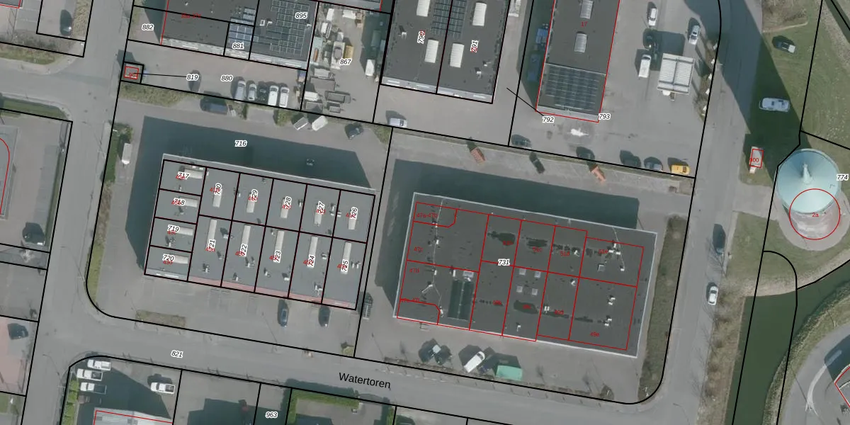 Het perceel waarop Watertoren 47-a staat heeft een oppervlakte van 3970 m². Dit is een zeer groot perceel. De perceeloppervlakte wordt geregistreerd door het Kadaster. Gedetailleerde informatie over de maten van dit perceel kunt u vinden in het rapport Kadastrale kaart met maatvoering van Watertoren 47-a.