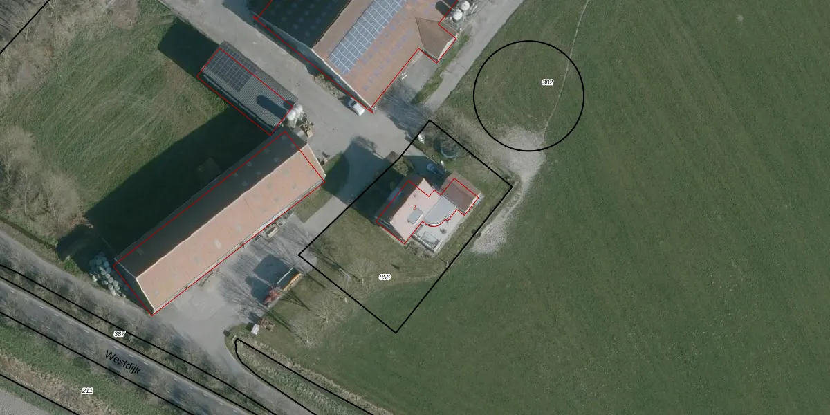 Het perceel waarop Westdijk 2 staat heeft een oppervlakte van 1230 m². Dit is een zeer groot perceel. De perceeloppervlakte wordt geregistreerd door het Kadaster. Gedetailleerde informatie over de maten van dit perceel kunt u vinden in het rapport Kadastrale kaart met maatvoering van Westdijk 2.