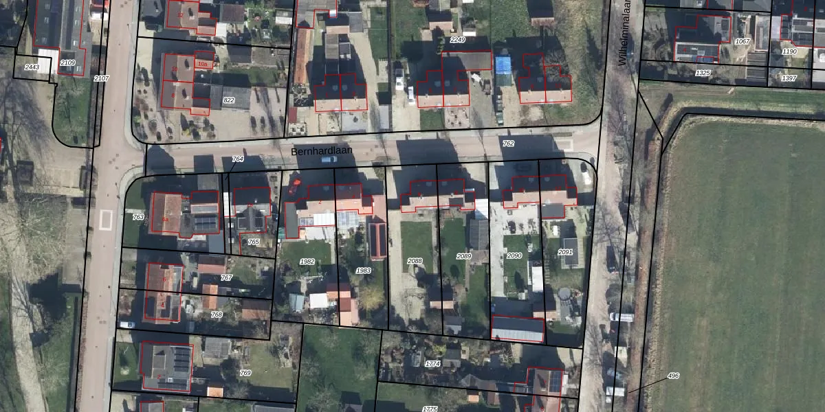 Het perceel waarop Bernhardlaan 6 staat heeft een oppervlakte van 518 m². Dit is een groot perceel. De perceeloppervlakte wordt geregistreerd door het Kadaster. Gedetailleerde informatie over de maten van dit perceel kunt u vinden in het rapport Kadastrale kaart met maatvoering van Bernhardlaan 6.