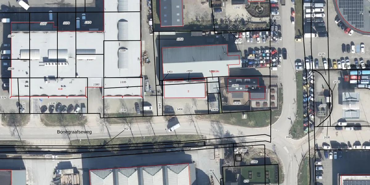 Het perceel waarop Bonegraafseweg 2 staat heeft een oppervlakte van 395 m². Dit is een groot perceel. De perceeloppervlakte wordt geregistreerd door het Kadaster. Gedetailleerde informatie over de maten van dit perceel kunt u vinden in het rapport Kadastrale kaart met maatvoering van Bonegraafseweg 2.