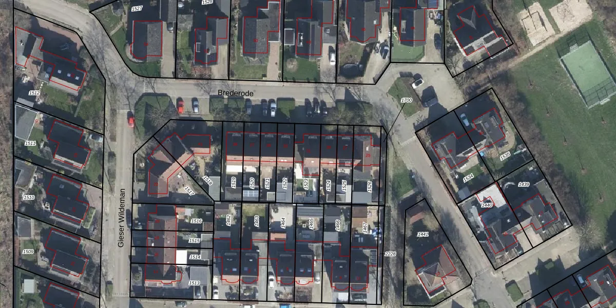 Het perceel waarop Brederode 31 staat heeft een oppervlakte van 219 m². Dit is een middelgroot perceel. De perceeloppervlakte wordt geregistreerd door het Kadaster. Gedetailleerde informatie over de maten van dit perceel kunt u vinden in het rapport Kadastrale kaart met maatvoering van Brederode 31.