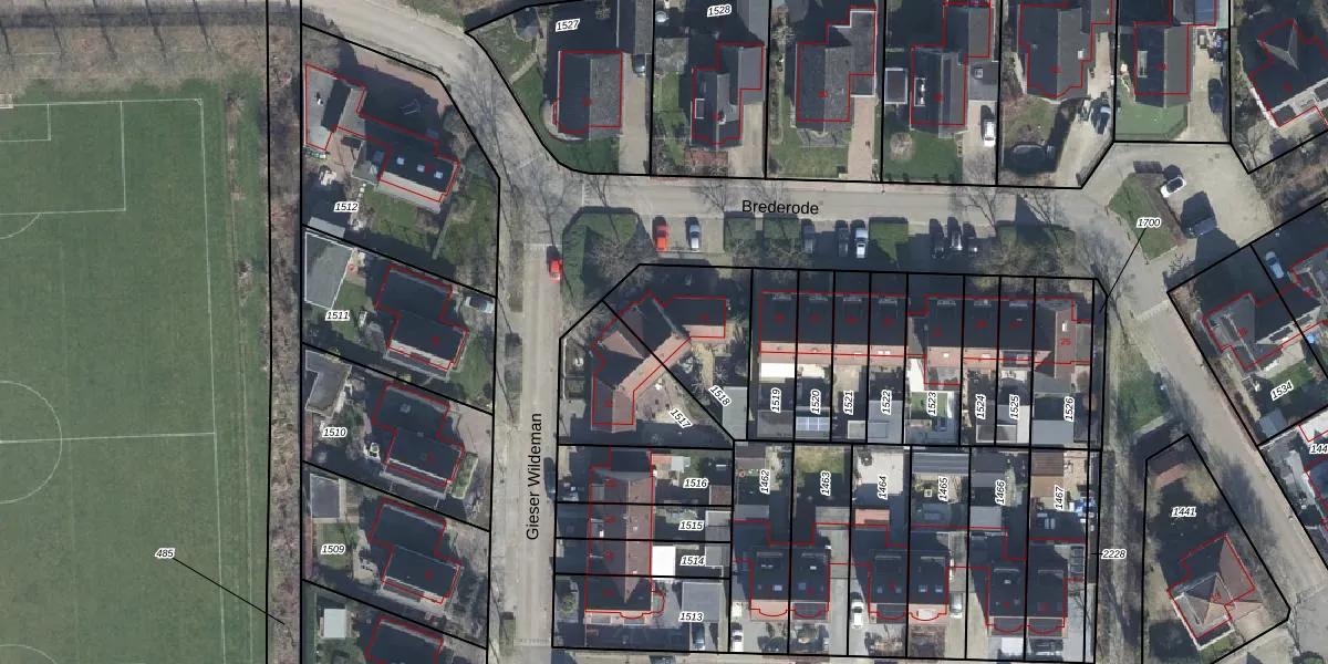Het perceel waarop Brederode 41 staat heeft een oppervlakte van 352 m². Dit is een groot perceel. De perceeloppervlakte wordt geregistreerd door het Kadaster. Gedetailleerde informatie over de maten van dit perceel kunt u vinden in het rapport Kadastrale kaart met maatvoering van Brederode 41.