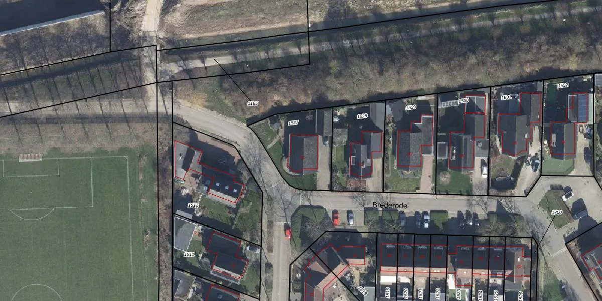 Het perceel waarop Brederode 54 staat heeft een oppervlakte van 542 m². Dit is een groot perceel. De perceeloppervlakte wordt geregistreerd door het Kadaster. Gedetailleerde informatie over de maten van dit perceel kunt u vinden in het rapport Kadastrale kaart met maatvoering van Brederode 54.