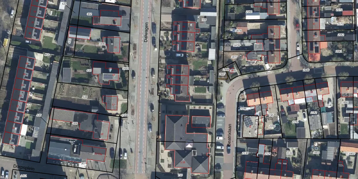 Het perceel waarop Dalwagen 26 staat heeft een oppervlakte van 5235 m². Dit is een zeer groot perceel. De perceeloppervlakte wordt geregistreerd door het Kadaster. Gedetailleerde informatie over de maten van dit perceel kunt u vinden in het rapport Kadastrale kaart met maatvoering van Dalwagen 26.