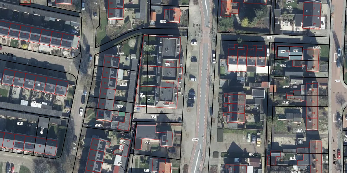 Het perceel waarop het adres ligt is DDW00-C-503. De afkorting 'DDW00' staat voor kadastrale gemeente Dodewaard. De gemiddelde perceelgrootte in Dodewaard is 4860 m². Dit perceel is kleiner: de perceeloppervlakte bedraagt 975 m². Het grootste perceel in de kadastrale gemeente is 38,7 ha. Het kleinste perceel heeft een oppervlakte van 1 m². Op het perceel zijn 10 adressen aanwezig. In de Basisregistratie Kadaster (BRK) werden de grenzen van het perceel geregistreerd op 22-10-2010.