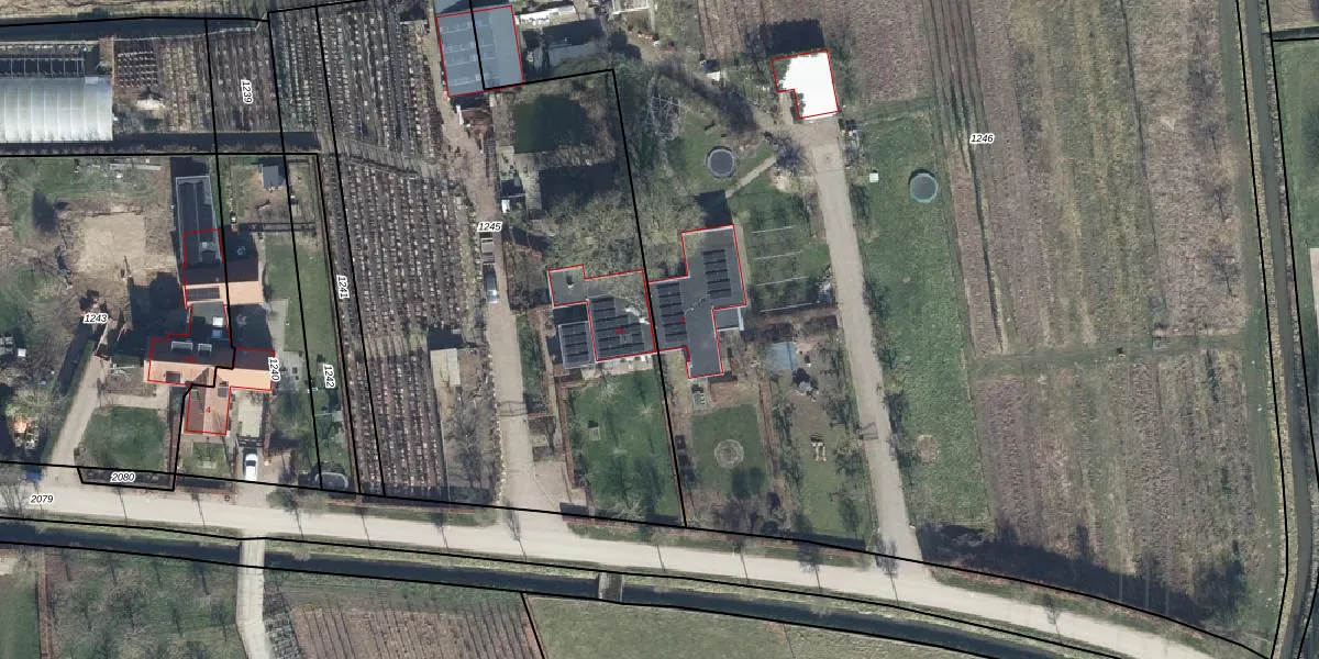 Het perceel waarop het adres ligt is DDW00-C-1246. De afkorting 'DDW00' staat voor kadastrale gemeente Dodewaard. Het perceel is met 9550 m² relatief groot. Het gemiddelde ligt in de kadastrale gemeente Dodewaard op 4858,57 m². De grootste perceeloppervlakte in de kadastrale gemeente is 38,7 ha. De kleinste oppervlakte bedraagt 1 m². Er zijn geen andere adressen aanwezig op het perceel. In de Basisregistratie Kadaster (BRK) werden de grenzen van het perceel geregistreerd op 30-10-2006.