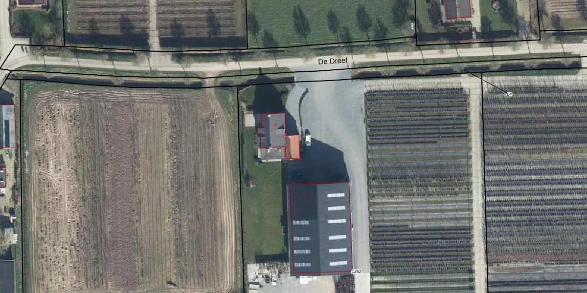 De Dreef 3 is gelegen op kadastraal perceel DDW00C1362. Deze kadastrale aanduiding is uniek en wordt gebruikt door het Kadaster om eigendomsrechten en andere zakelijke rechten vast te leggen. Het perceel maakt onderdeel uit van de kadastrale gemeente Dodewaard.