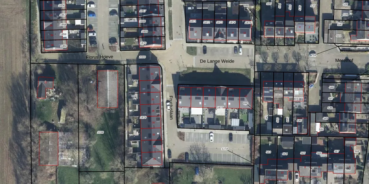 De Lange Weide 1 is gelegen op kadastraal perceel DDW00C1877. Deze kadastrale aanduiding is uniek en wordt gebruikt door het Kadaster om eigendomsrechten en andere zakelijke rechten vast te leggen. Het perceel maakt onderdeel uit van de kadastrale gemeente Dodewaard.
