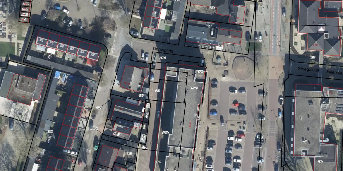 Het perceel waarop Dorpsplein 30 staat heeft een oppervlakte van 250 m². Dit is een middelgroot perceel. De perceeloppervlakte wordt geregistreerd door het Kadaster. Gedetailleerde informatie over de maten van dit perceel kunt u vinden in het rapport Kadastrale kaart met maatvoering van Dorpsplein 30.