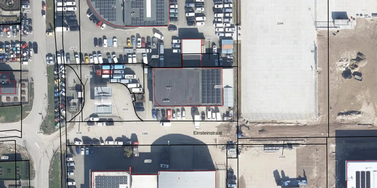 Het perceel waarop Einsteinstraat 2 staat heeft een oppervlakte van 1490 m². Dit is een zeer groot perceel. De perceeloppervlakte wordt geregistreerd door het Kadaster. Gedetailleerde informatie over de maten van dit perceel kunt u vinden in het rapport Kadastrale kaart met maatvoering van Einsteinstraat 2.