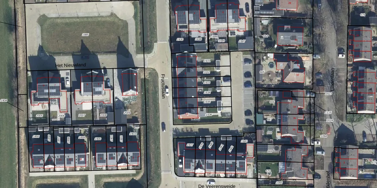 Gebruik de zoekbalk of klik op een perceel voor informatie over de adressen binnen dit perceel.