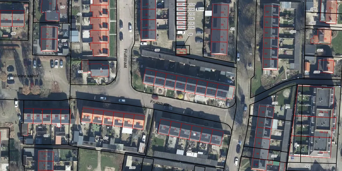 Fruitstraat 12 is gelegen op kadastraal perceel DDW00C396. Deze kadastrale aanduiding is uniek en wordt gebruikt door het Kadaster om eigendomsrechten en andere zakelijke rechten vast te leggen. Het perceel maakt onderdeel uit van de kadastrale gemeente Dodewaard.