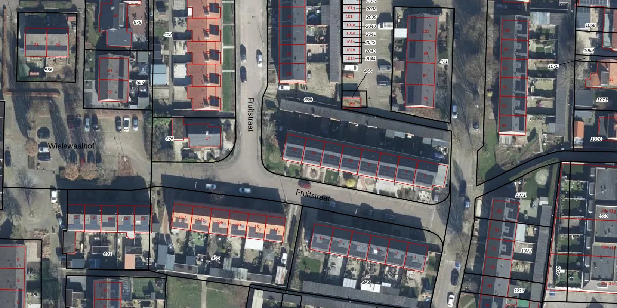 Fruitstraat 14 is gelegen op kadastraal perceel DDW00C396. Deze kadastrale aanduiding is uniek en wordt gebruikt door het Kadaster om eigendomsrechten en andere zakelijke rechten vast te leggen. Het perceel maakt onderdeel uit van de kadastrale gemeente Dodewaard.