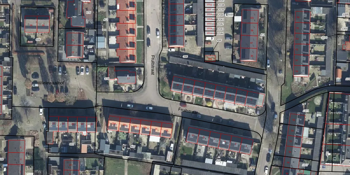 Fruitstraat 16 is gelegen op kadastraal perceel DDW00C396. Deze kadastrale aanduiding is uniek en wordt gebruikt door het Kadaster om eigendomsrechten en andere zakelijke rechten vast te leggen. Het perceel maakt onderdeel uit van de kadastrale gemeente Dodewaard.