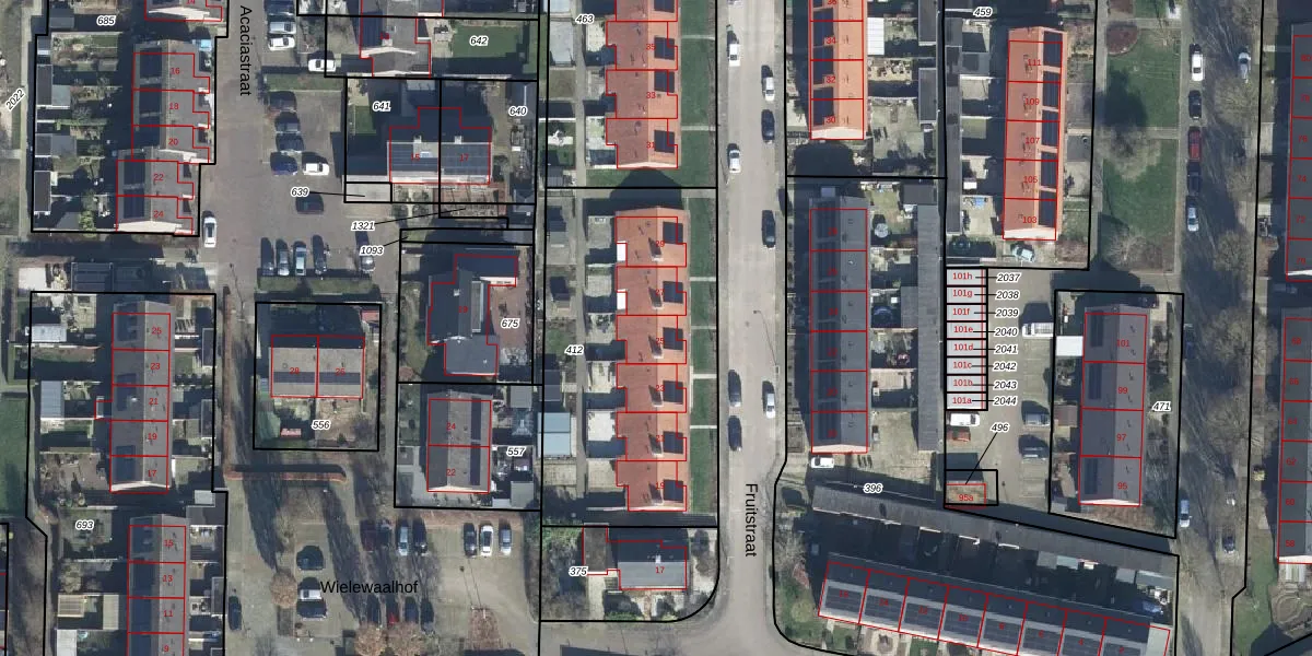 Het perceel waarop Fruitstraat 25 staat heeft een oppervlakte van 1395 m². Dit is een zeer groot perceel. De perceeloppervlakte wordt geregistreerd door het Kadaster. Gedetailleerde informatie over de maten van dit perceel kunt u vinden in het rapport Kadastrale kaart met maatvoering van Fruitstraat 25.