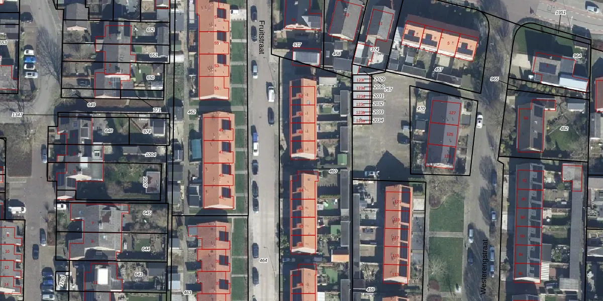 Het perceel waarop Fruitstraat 46 staat heeft een oppervlakte van 2397 m². Dit is een zeer groot perceel. De perceeloppervlakte wordt geregistreerd door het Kadaster. Gedetailleerde informatie over de maten van dit perceel kunt u vinden in het rapport Kadastrale kaart met maatvoering van Fruitstraat 46.