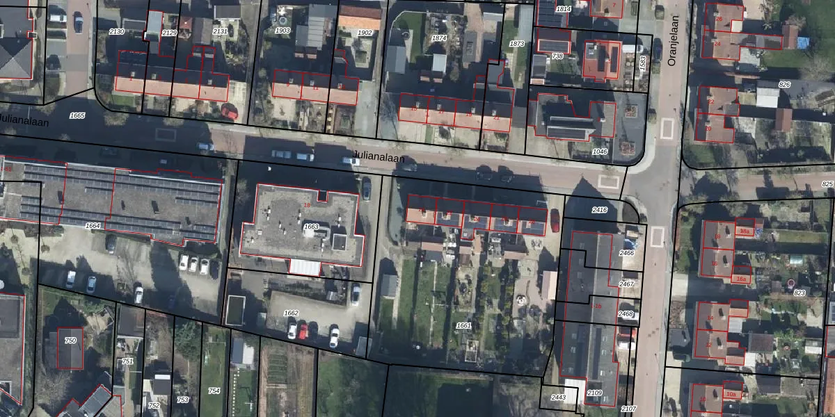 Het perceel waarop Julianalaan 20 staat heeft een oppervlakte van 1970 m². Dit is een zeer groot perceel. De perceeloppervlakte wordt geregistreerd door het Kadaster. Gedetailleerde informatie over de maten van dit perceel kunt u vinden in het rapport Kadastrale kaart met maatvoering van Julianalaan 20.