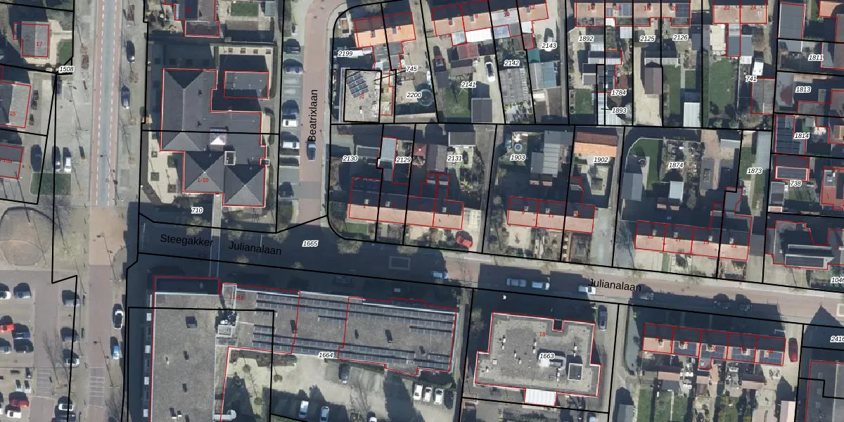 Het perceel waarop Julianalaan 5 staat heeft een oppervlakte van 575 m². Dit is een groot perceel. De perceeloppervlakte wordt geregistreerd door het Kadaster. Gedetailleerde informatie over de maten van dit perceel kunt u vinden in het rapport Kadastrale kaart met maatvoering van Julianalaan 5.