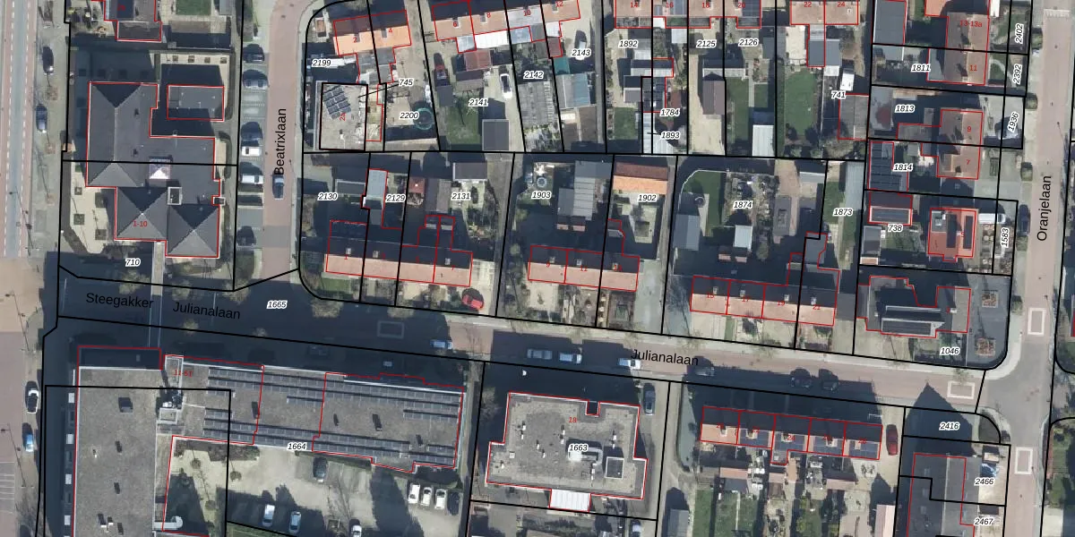 Het perceel waarop Julianalaan 9 staat heeft een oppervlakte van 575 m². Dit is een groot perceel. De perceeloppervlakte wordt geregistreerd door het Kadaster. Gedetailleerde informatie over de maten van dit perceel kunt u vinden in het rapport Kadastrale kaart met maatvoering van Julianalaan 9.