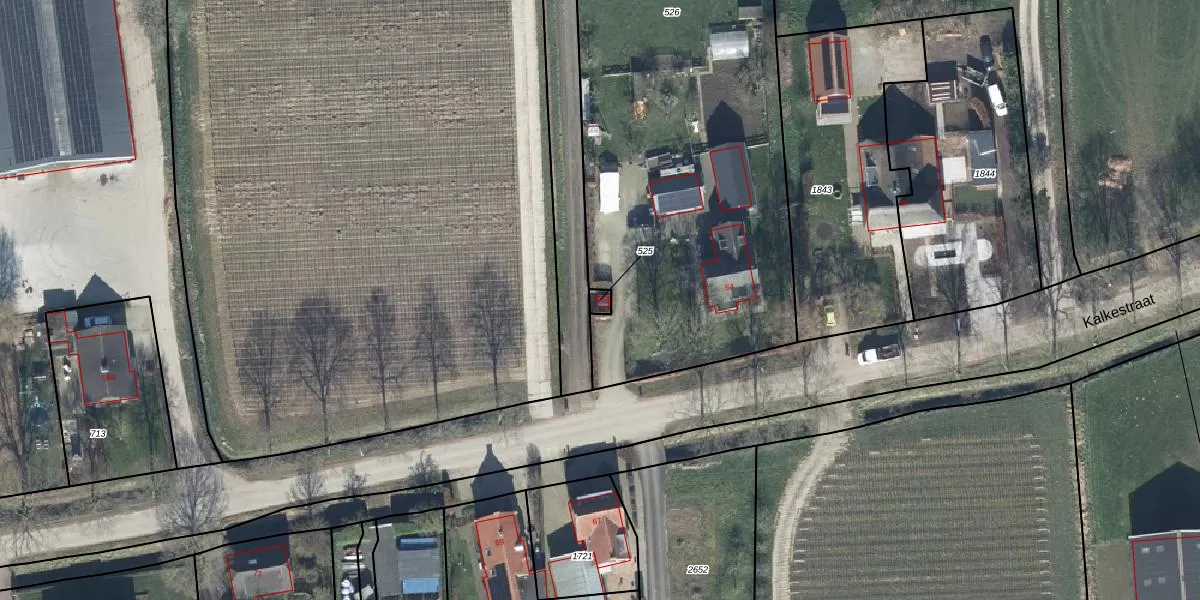 Kalkestraat 54-a is gelegen op kadastraal perceel DDW00C525. Deze kadastrale aanduiding is uniek en wordt gebruikt door het Kadaster om eigendomsrechten en andere zakelijke rechten vast te leggen. Het perceel maakt onderdeel uit van de kadastrale gemeente Dodewaard.