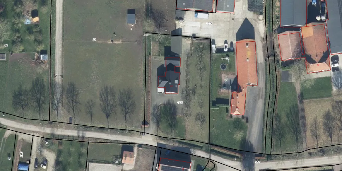 Het adres is gelegen op perceel 1675 in de sectie C en de kadastrale gemeente Dodewaard. De kadastrale aanduiding is aldus DDW00-C-1675. Het perceel is kleiner dan gemiddeld in Dodewaard. Het perceel is 2280 m² groot, terwijl het gemiddelde ligt op 4857,14 m². Het kleinste perceel in de kadastrale gemeente is 1 m² groot. De grootste perceeloppervlakte is 38,7 ha. Dit is het enige adres dat aanwezig is op het perceel. De huidige grenzen van het perceel zijn digitaal in de Basisregistratie Kadaster (BRK) geregistreerd op 01-11-2016.