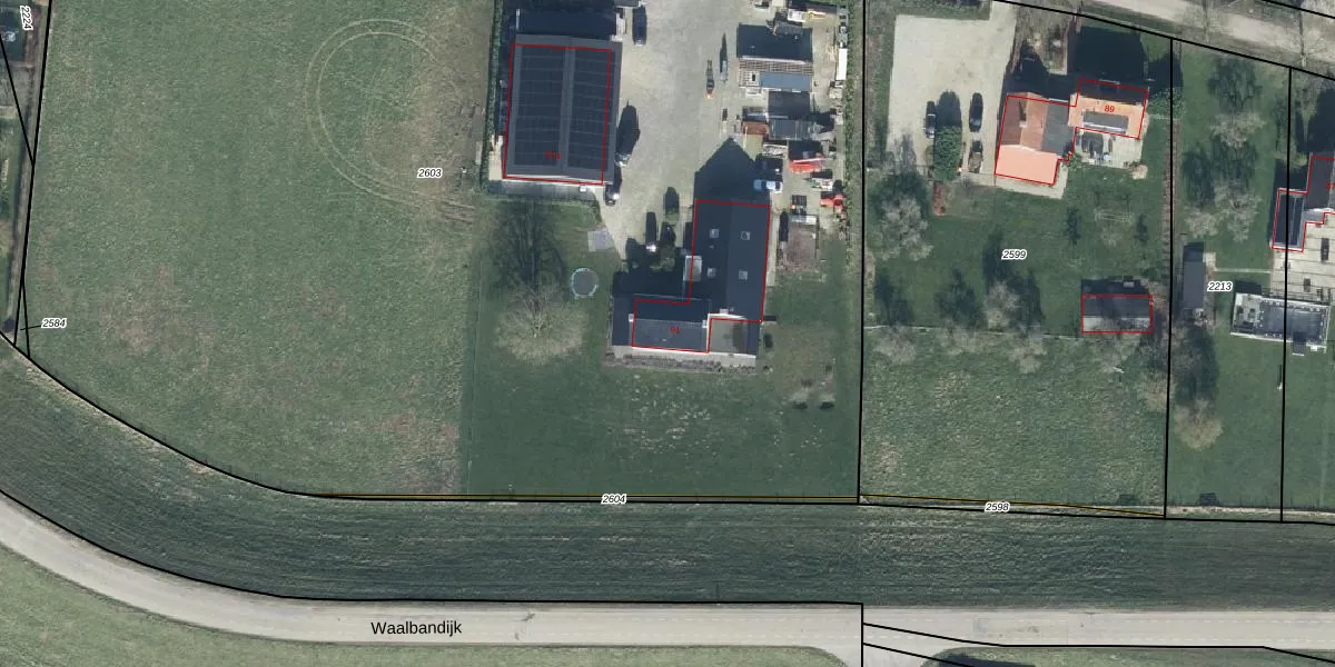 Het perceel waarop het adres ligt is DDW00-B-2603. De afkorting 'DDW00' staat voor kadastrale gemeente Dodewaard. Het perceel is met 1,2 ha relatief groot. Het gemiddelde ligt in de kadastrale gemeente Dodewaard op 4854,28 m². Het grootste perceel in de kadastrale gemeente is 38,7 ha. Het kleinste perceel heeft een oppervlakte van 1 m². Op het perceel liggen in totaal 2 adressen. De laatste wijziging in het de Basisregistratie Kadaster (BRK) was op 03-11-2023.