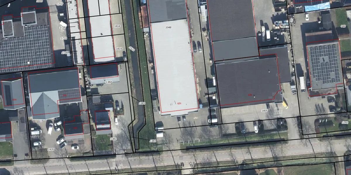 Het perceel waarop Matensestraat 62-c staat heeft een oppervlakte van 3437 m². Dit is een zeer groot perceel. De perceeloppervlakte wordt geregistreerd door het Kadaster. Gedetailleerde informatie over de maten van dit perceel kunt u vinden in het rapport Kadastrale kaart met maatvoering van Matensestraat 62-c.