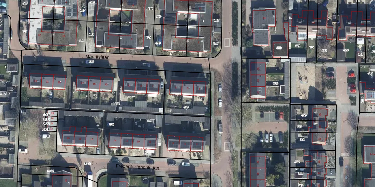 Het perceel waarop Mauritslaan 3 staat heeft een oppervlakte van 582 m². Dit is een groot perceel. De perceeloppervlakte wordt geregistreerd door het Kadaster. Gedetailleerde informatie over de maten van dit perceel kunt u vinden in het rapport Kadastrale kaart met maatvoering van Mauritslaan 3.