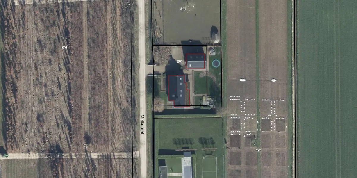 Melkdreef 3 is gelegen op kadastraal perceel DDW00C708. Deze kadastrale aanduiding is uniek en wordt gebruikt door het Kadaster om eigendomsrechten en andere zakelijke rechten vast te leggen. Het perceel maakt onderdeel uit van de kadastrale gemeente Dodewaard.