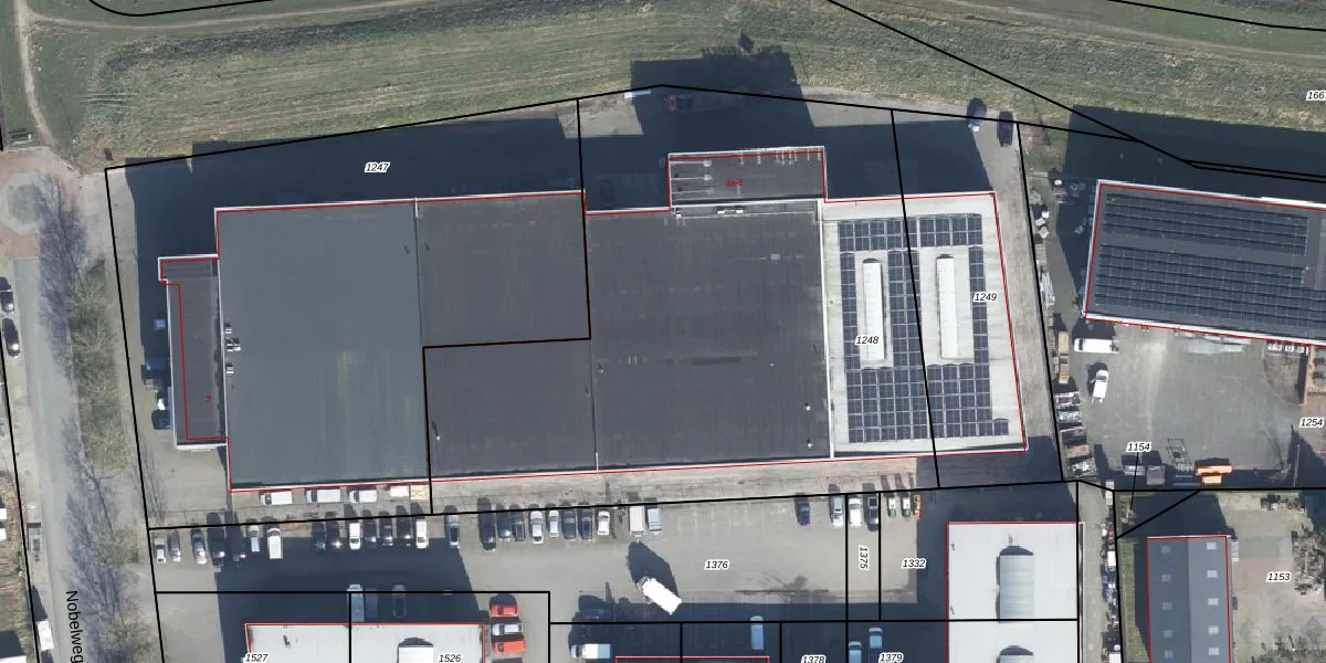 Het perceel waarop Nobelweg 5 staat heeft een oppervlakte van 3627 m². Dit is een zeer groot perceel. De perceeloppervlakte wordt geregistreerd door het Kadaster. Gedetailleerde informatie over de maten van dit perceel kunt u vinden in het rapport Kadastrale kaart met maatvoering van Nobelweg 5.