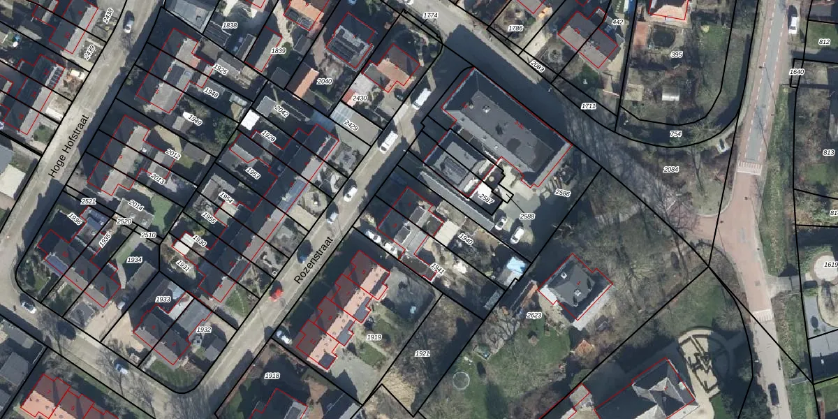 Gebruik de zoekbalk of klik op een perceel voor informatie over de adressen binnen dit perceel.
