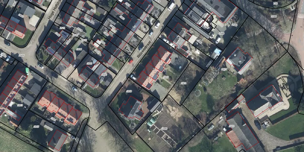 Het perceel waarop Rozenstraat 9 staat heeft een oppervlakte van 900 m². Dit is een groot perceel. De perceeloppervlakte wordt geregistreerd door het Kadaster. Gedetailleerde informatie over de maten van dit perceel kunt u vinden in het rapport Kadastrale kaart met maatvoering van Rozenstraat 9.