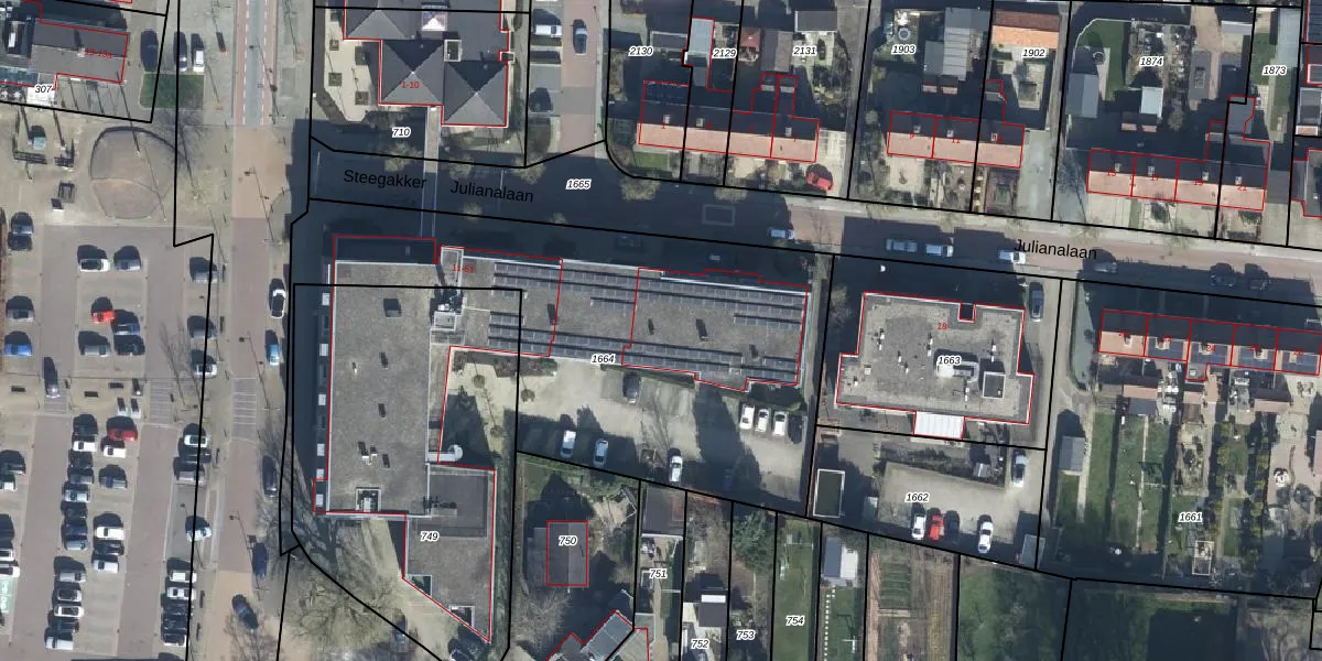 Het perceel waarop Steegakker 39 staat heeft een oppervlakte van 2165 m². Dit is een zeer groot perceel. De perceeloppervlakte wordt geregistreerd door het Kadaster. Gedetailleerde informatie over de maten van dit perceel kunt u vinden in het rapport Kadastrale kaart met maatvoering van Steegakker 39.