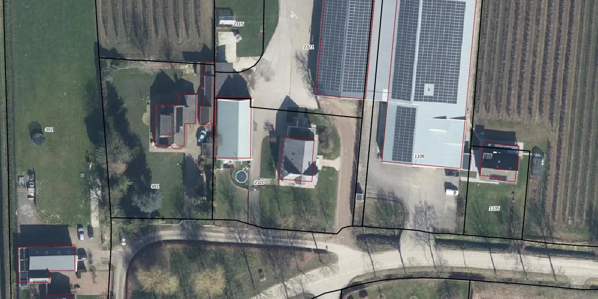Het perceel waarop het adres ligt is DDW00-D-2320. De afkorting 'DDW00' staat voor kadastrale gemeente Dodewaard. Het perceel is 1895 m² groot. Dat is kleiner dan de gemiddelde perceeloppervlakte in Dodewaard, dat op 4857,14 m² ligt. Het kleinste perceel in de kadastrale gemeente is 1 m² groot. De grootste perceeloppervlakte is 38,7 ha. Dit is het enige adres dat aanwezig is op het perceel. In de Basisregistratie Kadaster (BRK) werden de grenzen van het perceel geregistreerd op 11-10-2023.