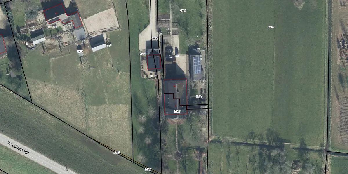Het perceel waarop het adres ligt is DDW00-D-1889. De afkorting 'DDW00' staat voor kadastrale gemeente Dodewaard. Het perceel is 3243 m² groot. Dat is kleiner dan de gemiddelde perceeloppervlakte in Dodewaard, dat op 4860 m² ligt. Het grootste perceel in de kadastrale gemeente is 38,7 ha. Het kleinste perceel heeft een oppervlakte van 1 m². Op het perceel bevinden zich geen andere adressen. De laatste wijziging in het de Basisregistratie Kadaster (BRK) was op 11-03-2011.