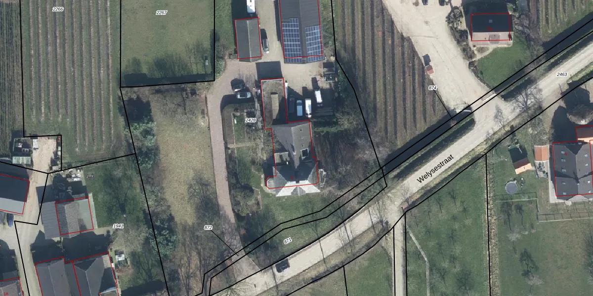 Het perceel waarop Welysestraat 5 staat heeft een oppervlakte van 5857 m². Dit is een zeer groot perceel. De perceeloppervlakte wordt geregistreerd door het Kadaster. Gedetailleerde informatie over de maten van dit perceel kunt u vinden in het rapport Kadastrale kaart met maatvoering van Welysestraat 5.