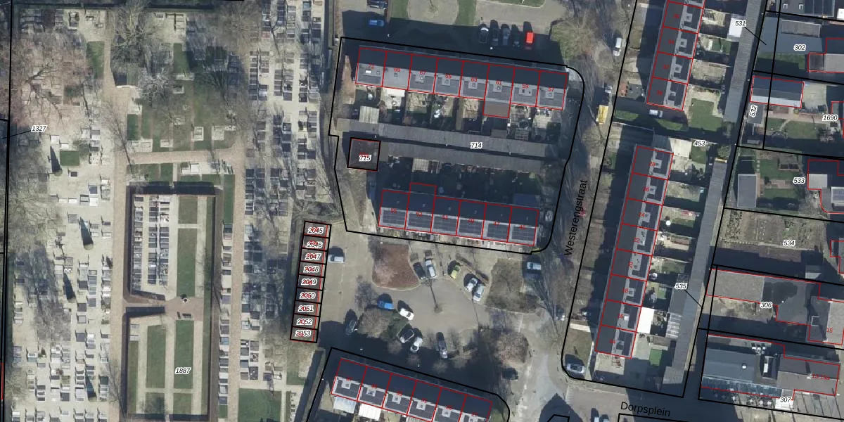 Het perceel waarop Westerengstraat 53 staat heeft een oppervlakte van 2441 m². Dit is een zeer groot perceel. De perceeloppervlakte wordt geregistreerd door het Kadaster. Gedetailleerde informatie over de maten van dit perceel kunt u vinden in het rapport Kadastrale kaart met maatvoering van Westerengstraat 53.