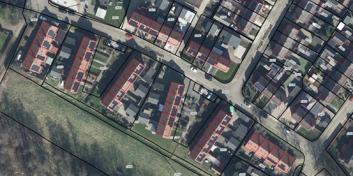 Het perceel waarop Wilgenlaan 19 staat heeft een oppervlakte van 1960 m². Dit is een zeer groot perceel. De perceeloppervlakte wordt geregistreerd door het Kadaster. Gedetailleerde informatie over de maten van dit perceel kunt u vinden in het rapport Kadastrale kaart met maatvoering van Wilgenlaan 19.