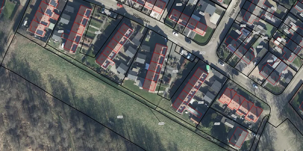 Het perceel waarop Wilgenlaan 25 staat heeft een oppervlakte van 1960 m². Dit is een zeer groot perceel. De perceeloppervlakte wordt geregistreerd door het Kadaster. Gedetailleerde informatie over de maten van dit perceel kunt u vinden in het rapport Kadastrale kaart met maatvoering van Wilgenlaan 25.