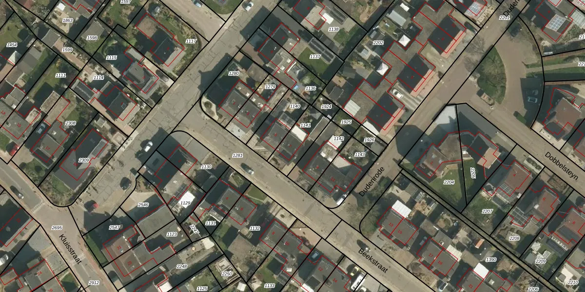 Gebruik de zoekbalk of klik op een perceel voor informatie over de adressen binnen dit perceel.